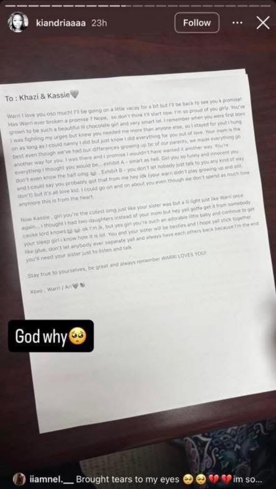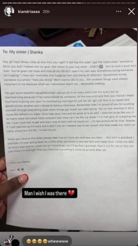 We do not know the details behind Kyaria’s suicide, but it seems she may have been planning this for some time because it appears (based on several social media posts) she left behind suicide letters for her family.